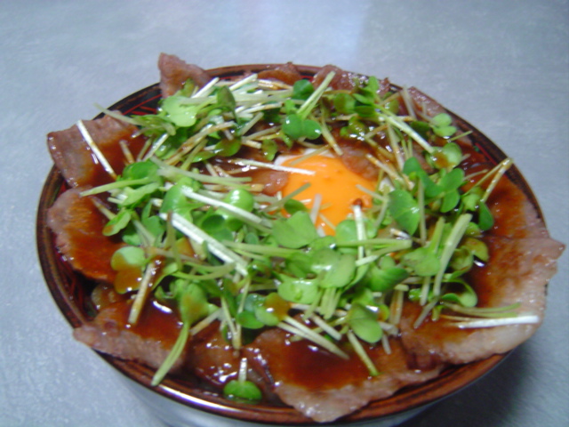 牛カルビ(焼肉用) 焼肉のタレ カイワレ大根 卵 玉ねぎ ①玉ねぎを縦半分に切って2mm程度にスライスしたものを、油で炒める。 ②炒めた玉ねぎに焼肉のタレを絡める。 ③ドンブリにご飯の半量をよそう ④②を表面に敷きその上にご飯をよそう。 ⑤④と同じにご飯の上に玉ねぎを敷く。 ⑥牛カルビを焼いて、焼肉のタレを絡ませ⑤に乗せる ⑦目玉焼きを作り、真ん中にのせる。 ⑧カイワレ大根の根を切りったものを3等分に切り、目玉焼きの周りにまるく置く。 *焼肉のタレ* 里香のお気に入りはこれです!! 戸村ワイン入り焼肉のタレ メチャクチャ美味しいです。 「戸村のタレしか今は食べません!」と言うほどホレ込んでいます。 宮崎、熊本では一部スーパーなどに売ってありますが、 どこででも手に入らないと思います。 同じ物ではありませんが、 ↓この焼肉のタレは通販で買えますので、ご紹介しておきます。 実際に私自身が食べてみて、とっても美味しいと思います。 ワイン入りが手に入らないときはこれを買っています。 是非是非、おためし下さい。 【宮崎県日南で昭和41年創業以来、愛され続けている】戸村本店の焼肉のたれ/400g 高純度腸溶性ラクトフェリン240粒入徳用 【1117PUP10】【本日ポイント10倍!】【送料無料/おまけ付】聖夜にサンタが魔法をかけた?すぐ...【 関連サイト 】 里香のチョロチョロ磯釣り日記 http://www.geocities.jp/rikanocyoro2iso/ 里香のチョロチョロGOLF http://turineko.nce.buttobi.net/ 【 関連Blog 】 里香の優遊Time http://rikayouyou.blog44.fc2.com/ 里香のまいらいふ http://rikaomake.blog.shinobi.jp/ |