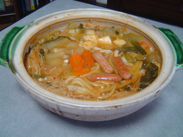 【 材料 】 にんじん、はくさい、ねぎ、えのき、しいたけ、もやし、うどん、豚肉、ウインナー、キムチ かつおだし、しょうゆ、みそ、キムチの素、酒 【 作り方 】 *鍋だし 適宜のこんぶだし汁にしょうゆ、酒を入れ味をみる(この時は少し薄い目が良い) そこにみそを少し入れる(味噌汁なら色が付く程度) それにキムチの素を好みの辛さになる様に入れる。 野菜等を煮る! 私のは料理のレシピとしてはさっぱり役にたたないのだろう・・・ ほぼ、目分量で作っているから! が、何と何を入れてつくるかというだけで自分なりに作れる人向けだと思います。 実際、細かに何ccだとか計って作っていないのでわかんなかったりします。 【筑前屋】特選国産牛もつ使用!博多モツ鍋セット 1人前 【 関連サイト 】 里香のチョロチョロ磯釣り日記 http://www.geocities.jp/rikanocyoro2iso/ 里香のチョロチョロGOLF http://turineko.nce.buttobi.net/ 【 関連Blog 】 里香の優遊Time http://rikayouyou.blog44.fc2.com/ 里香のまいらいふ http://rikaomake.blog.shinobi.jp/ PR